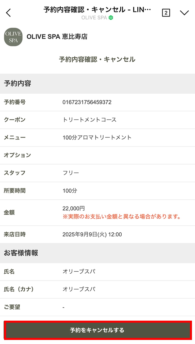 日程変更・予約キャンセル 日程変更をご希望の場合は、予約キャンセル後に再度予約をしていただくか、店舗へ直接お問い合わせください